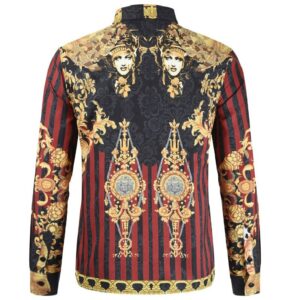Style:Men’s 3D Print Lapel Neck Long Sleeves Slim Casual Button Shirt Multi-color Tops
