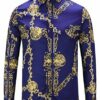 Style:Men’s 3D Print Lapel Neck Long Sleeves Slim Casual Button Shirt Multi-color Tops