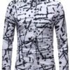 Style:Men’s 3D Print Lapel Neck Long Sleeves Slim Casual Button Shirt Multi-color Tops